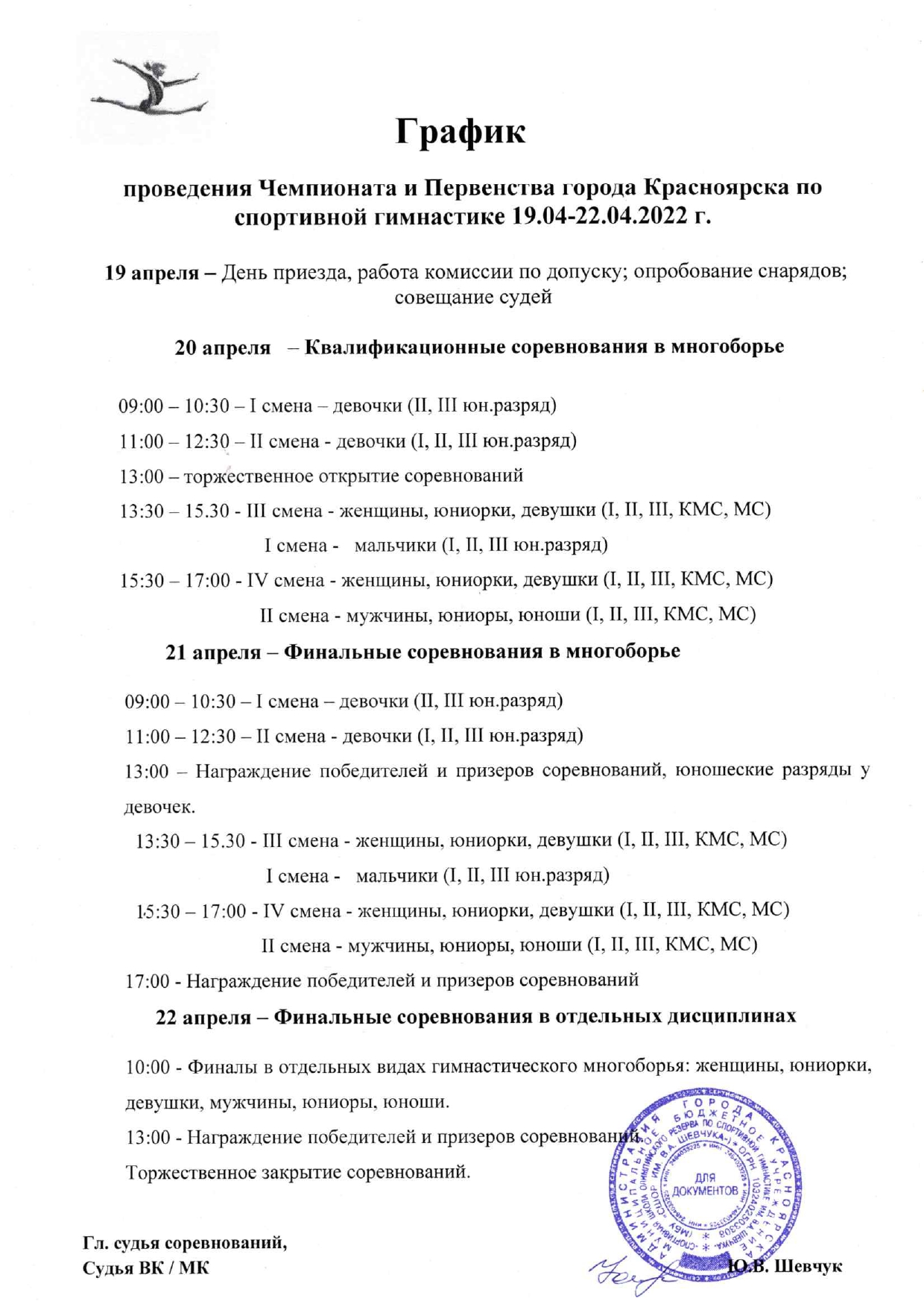 График проведения чемпионата и первенства города Красноярска по спортивной гимнастике 2022 г. - Новости